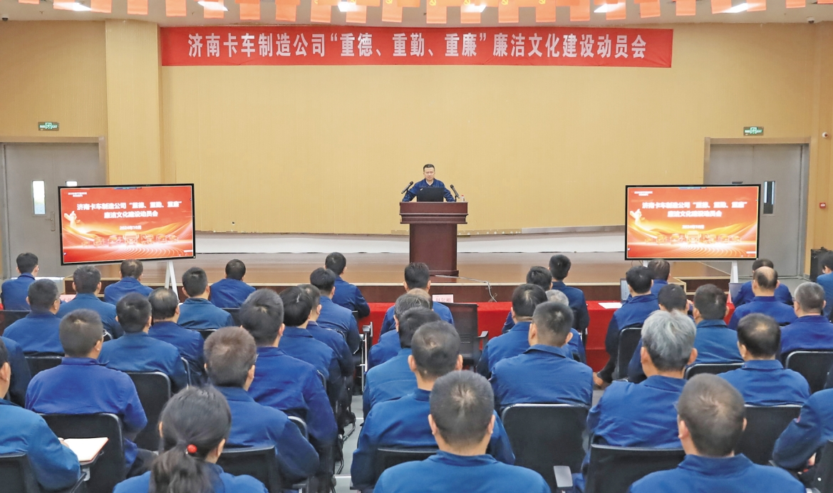 会上,济南卡车制造公司正式启动《“重德、重勤、重廉”清廉建设示范工程实施方案》,明确了以“五廉”为核心的创建工作思路及具体工作做法,并确定了“心有廉,行千里”的清廉卡车文化品牌。