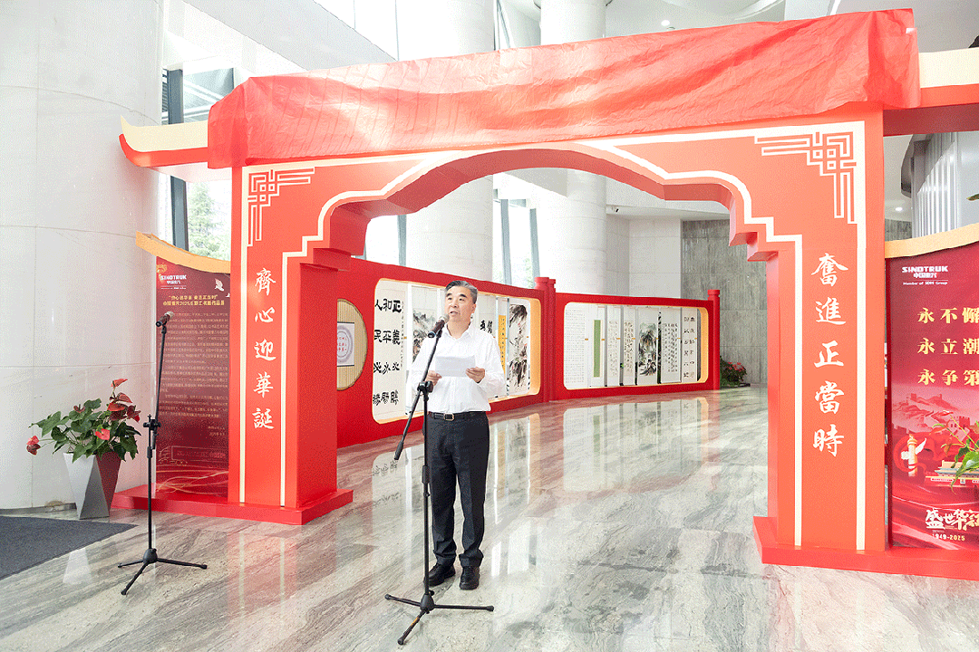 叶建军勉励大家,要把书画作品中蕴含的爱国情、奋斗志,转化为立足岗位、攻坚克难的实际行动,以更加饱满的热情、更加务实的作风,共同为集团持续高质量发展添砖加瓦。